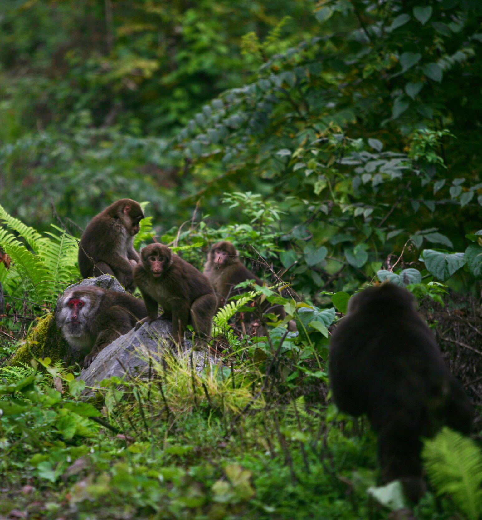 Arriving at Hailuogou, when you enter the No.1 campsite, you will inadvertently and unconsciously meet a group of monkeys on the road, in the forest, by the creek, near the hot spring pool.