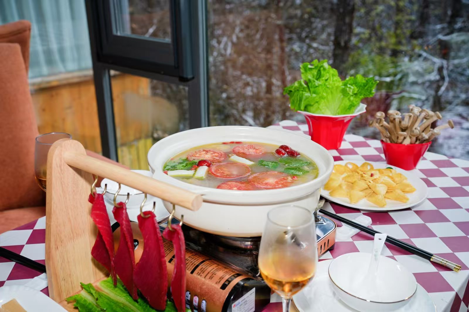 海螺沟景区的牦牛汤锅原材料采至海拔3000-6001米高原的牦牛,他们饮天然矿泉水,吃野生天然绿色食品,一生摄入大量虫草、贝母等名贵中药材,比普通牛肉营养价值更丰富、肉质更鲜嫩、品质更纯净,富含蛋白质、氨基酸、胡萝卜素等多种人体必需的营养素,高能量、低脂肪。对增强抵抗力、细胞活力和器官功能有显著作用,健康养生又美味,深受广大吃货们的好评!