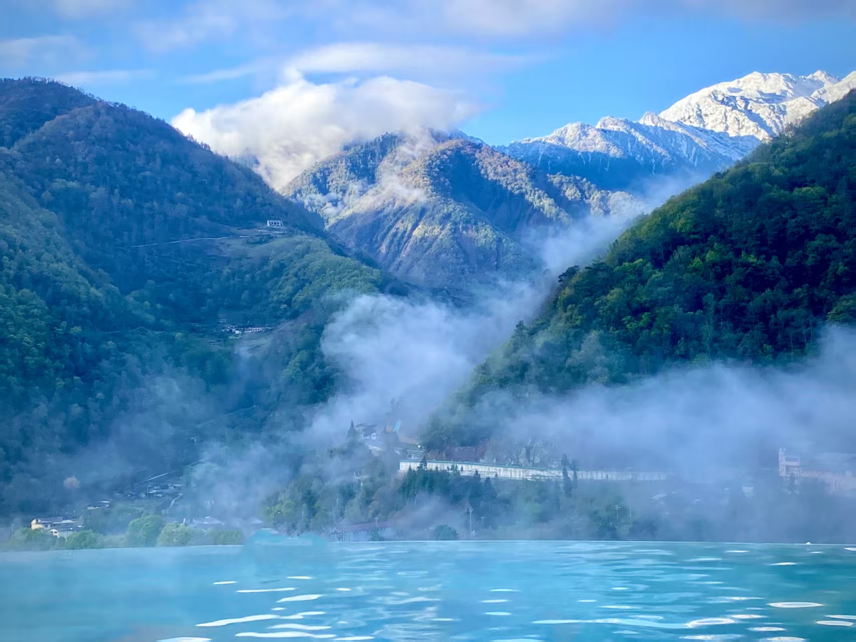 “天域瑶池”温泉康养中心建成于2019年,酒店总投资6000多万,占地面积约5000平方米,建筑面积约6700平方米,是海螺沟一家集温泉、休闲、娱乐为一体的温泉中心,拥有室内外温泉泡池14个、1个半标准游泳池(宽13米*长25米)和1个高空无边泳池。温泉区内设有干蒸、巨幕休息厅、棋牌室、健身房、书吧等不同功能区,可为不同顾客提供舒适、休闲的度假环境。