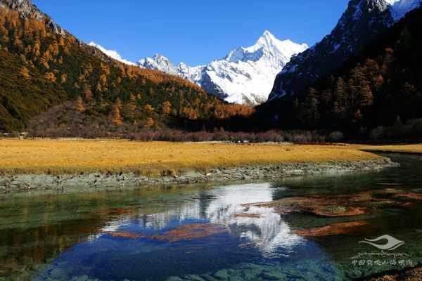 亚丁,藏语意为“向阳之地”。保护区内的三座雪山:仙乃日、央迈勇、夏诺多吉,南北向分布,呈品字形排列,统称“念青贡嘎日松贡布”,意为:终年积雪不化的三座护法神山圣地。藏传佛教中称其为“三怙主雪山”,是藏民心中的神圣之地。